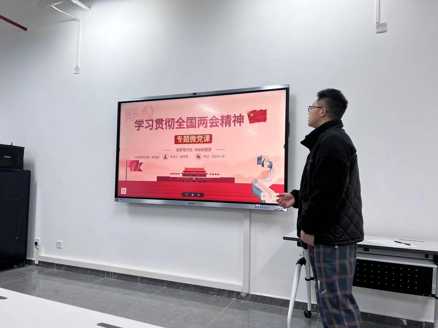 为深入学习贯彻全国两会精神,推动两会精神在基层党支部落地见效,近日,水资研究生第一党支部在亚洲在线 B520会议室顺利开展“学习贯彻两会精神,争做新时代新青年”主题微党课,支部全体党员和部分共青团员参加,大会由党支部副书记谢坪良主持。