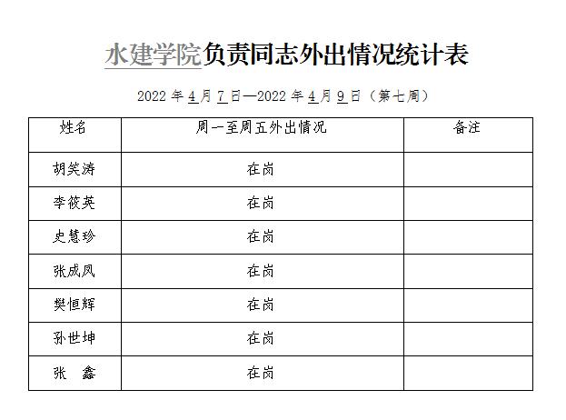 » 亚洲在线 负责同志外出情况统计表(第七周)