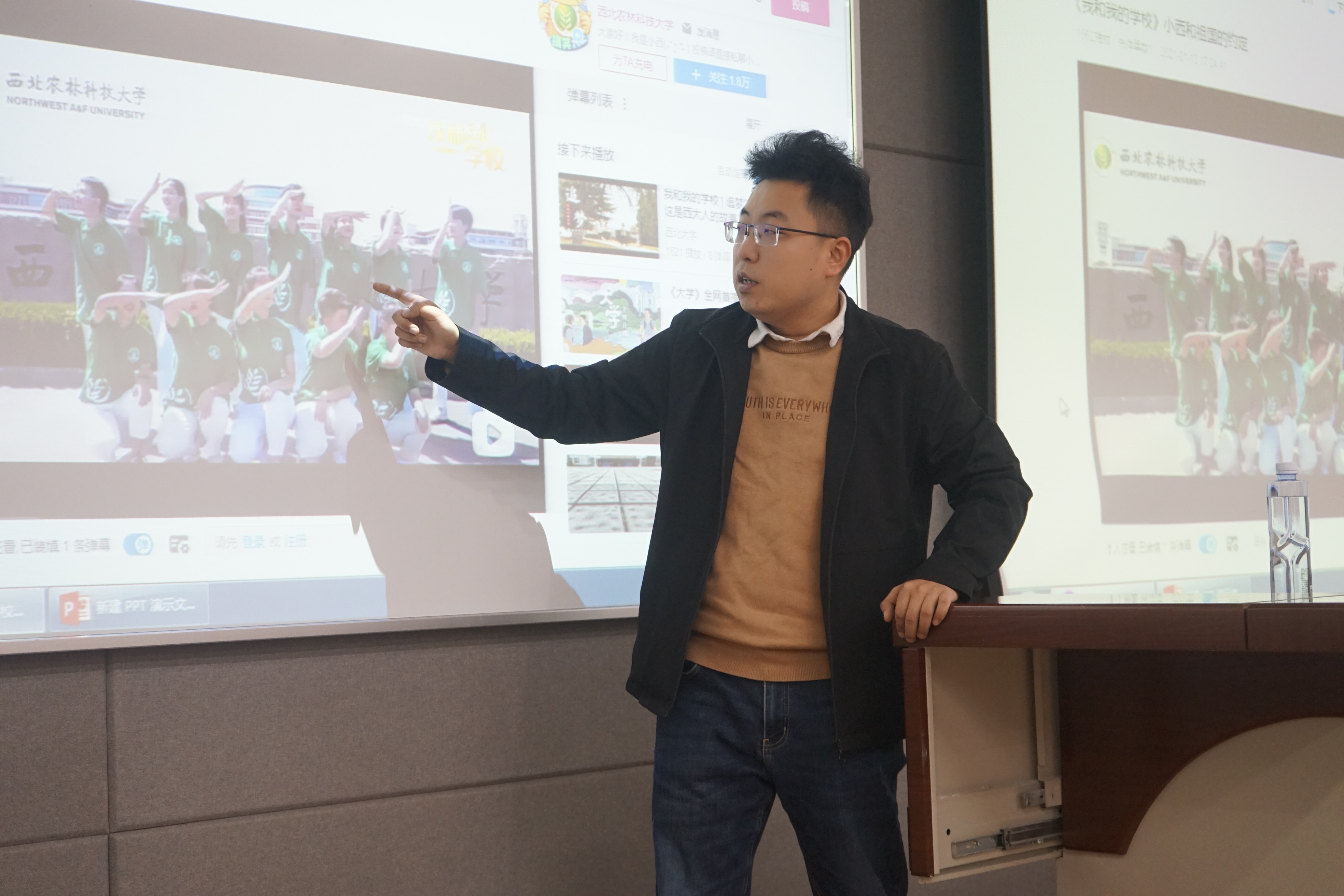 活动开始后,张老师通过点评学校官方账号在哔哩哔哩平台发布的短视频的亮点和缺点,从专业知识、实际应用两方面穿插讲解短视频制作的有关知识,重点对内容、画面和声音进行了讲解。同时点出了同学们在拍摄过程中容易出现的误区,并给出如何创作优秀短视频的建议。