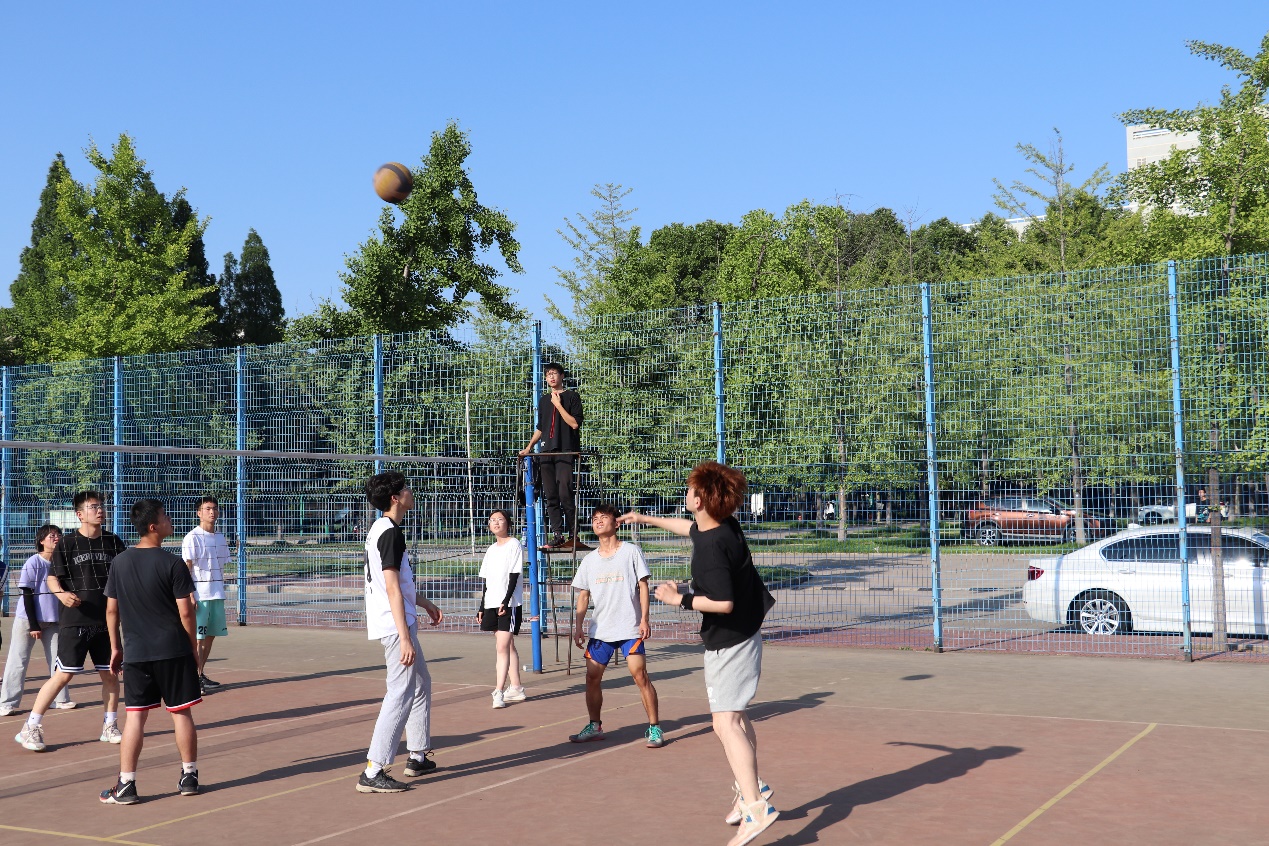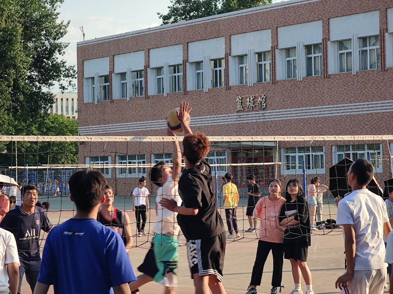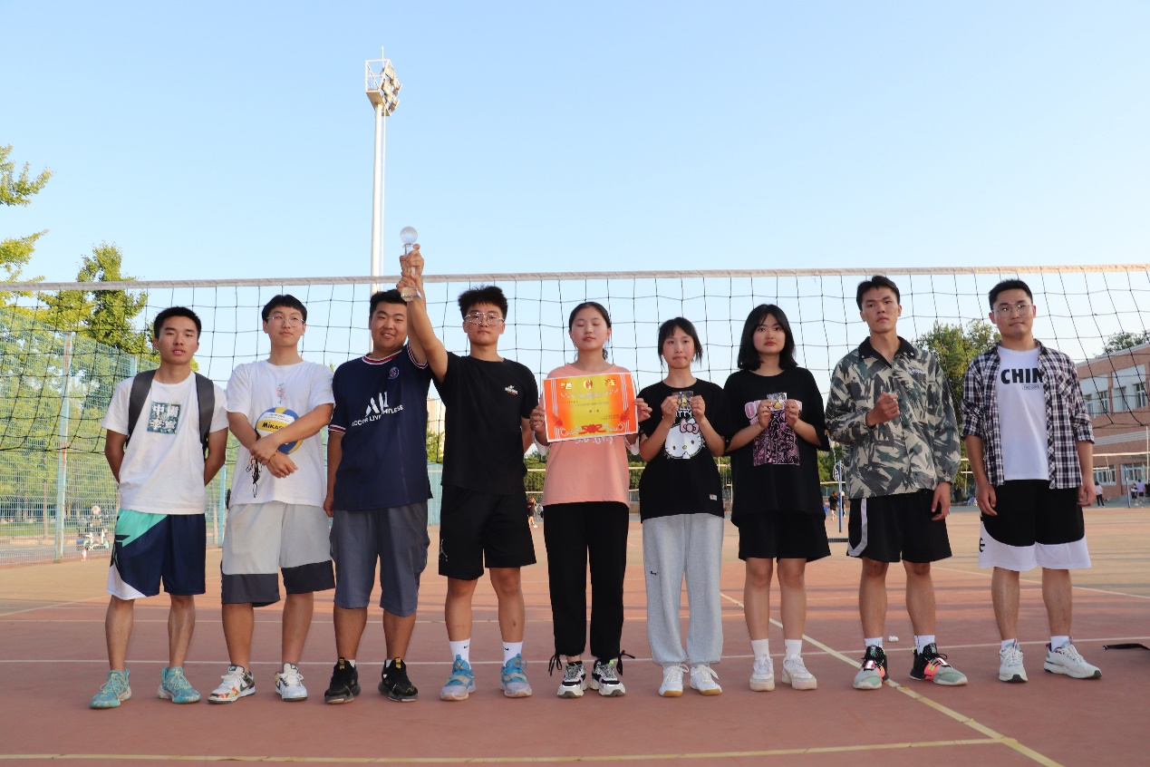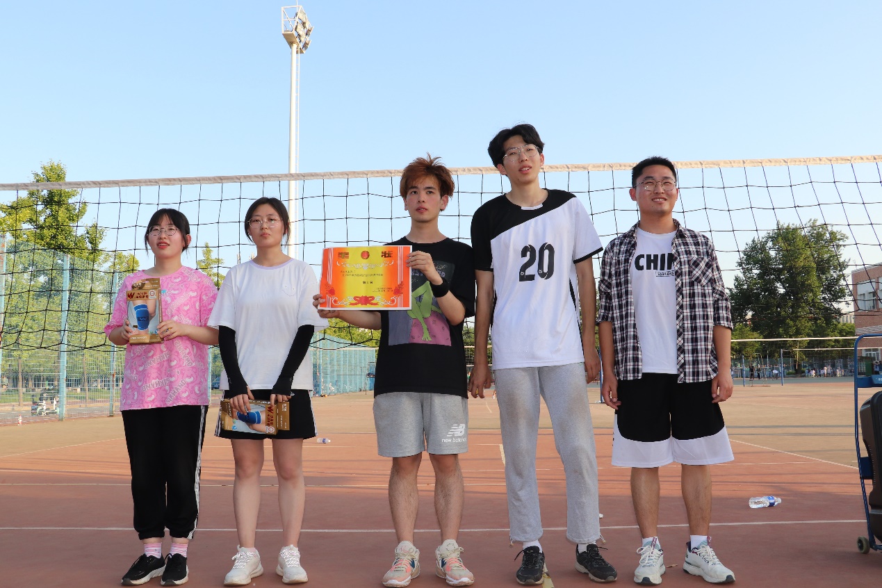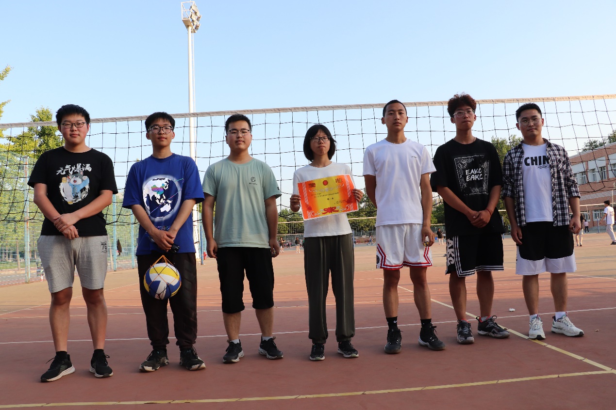 一颗排球,在沉默中穿越了球网,撕碎了空气,如同一颗陨石,砰,砸向了地面,也砸碎了沉默,“哇哦”欢呼一片,发球得分!电气水资代表队与水工123班代表队的比赛可用一个字形容——烈,不是激烈,是熊熊燃烧的烈火,双方都太拼了!跳发球,扣杀,双手挡球……各种技巧层出不穷,跑,跳,传,扣,一套动作行云流水。两支队伍旗鼓相当,难分胜负,在烈阳横空之下,两支队伍居然顶着酷暑打满了5局,最终,水工123班代表队获得季军。