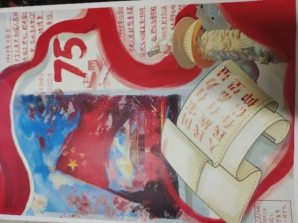 活动现场气氛热烈,同学们满怀热情与创作激情,围绕国庆主题尽情挥洒才情与想象力。他们以丰富多彩的绘画与灵动的文字,描绘出祖国的辉煌成就、壮丽山河与璀璨文化。从巍峨的长城到繁华的现代都市,从飘扬的五星红旗到各民族的团结和谐,每一幅手抄报都倾注了同学们对祖国深沉的眷恋与无尽的自豪,宛如一幅幅承载着家国情怀的绚丽画卷。