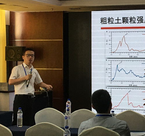 我院土木工程系樊恒辉研究员在“特殊岩土力学测试”分会场做了题为“分散土的判别方法与CFPK改性研究”的报告;杨秀娟副教授在“软土与污染土力学特性及处理”分会场做了题为“草甘膦农药污染黄土的电阻率特性试验研究”的报告;孟敏强博士在“特殊地基与基础”分会场做了题为“粗粒土单颗粒破碎强度与尺寸效应研究”的报告。这些报告充分展示了我院岩土工程学科的近期部分研究进展,受到了参会人员的广泛关注。