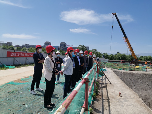 5月12日,亚洲在线 党委书记李筱英、院长胡笑涛等班子成员前往北校区亚洲在线 新楼施工工地察看新楼建设情况。