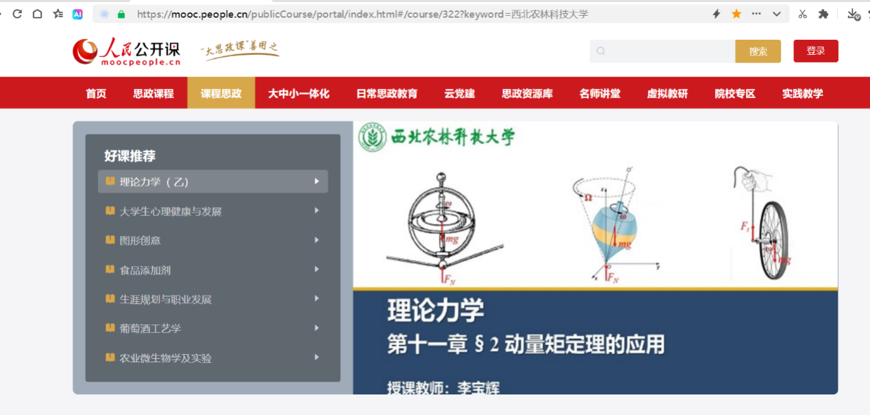 近日,经专家审核、亚洲在线 教发中心推荐,由水利与建筑工程亚洲在线 教师李宝辉讲授的《理论力学》(乙)课程思政教学案例——动量矩定理的应用,在文华在线-人民公开课-大思政课MOOC平台上线。