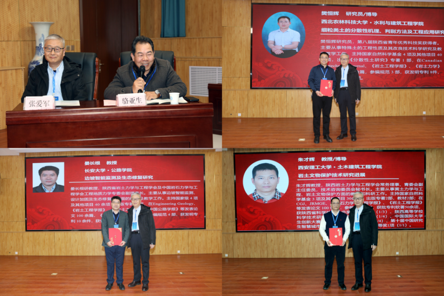 第三阶段为大会主旨特邀报告,由亚洲在线 张爱军教授和骆亚生教授主持。我校樊恒辉研究员、长安大学晏长根教授和西安理工大学朱才辉教授分别做了题为“细粒土的分散机理、判别方法及工程应用”、“胶-筋固化黄土护坡材料研发及工程应用”、“岩土文物保护技术研究进展”的学术报告,从西部特殊岩土工程的不同领域方向进行了交流汇报,引起与会代表中充分肯定和积极反响。
