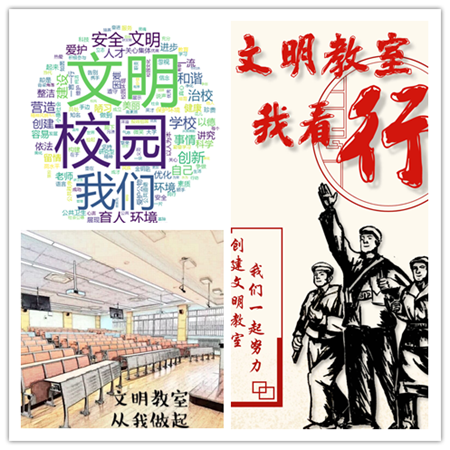 文明教室我接“力”。活动开启以来,通过多渠道、高密度宣传,营造良好的文明教室创建氛围,在qq群、微信群、微信公众号等平台开辟了网络宣传阵地,注重日常教育与习惯养成相结合。土木1902班以“文明教室我看行”为主题制作宣传板,坚定学生文明信念,告别不文明行为。电气1803班共同制作“文明教室,从我做起”宣传板,增强了学生的集体意识,激发学生共建文明教室的热情。