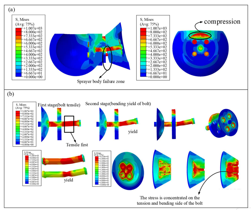 网壳是大跨度空间结构的一种常见结构形式,应用广泛。节点作为网壳的关键部件,其刚度是影响网壳结构稳定性的重要因素之一。基于此,该论文在碗式节点的基础之上,创新性地提出了一种新型喷头式节点,以期提高节点刚度。首先,建立了精细化的有限元模型,研究了轴向拉压荷载作用下周围螺栓半径不同的新型喷头式节点的弯曲性能(见图1);接着,提出了一种改进的双线性模型;最后,研究了新型喷头式节点与传统碗式节点单层柱面网壳结构的稳定性。
