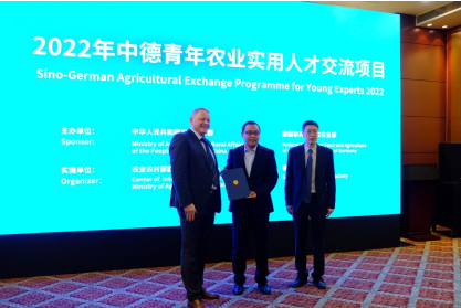 中德青年农业实用人才交流项目于2015年启动,由两国时任农业部长亲自部署、亲自推动,是两国农业合作的重要内容。该项目是中德农业人才合作培养的重要渠道,为双方从事农业研究的青年学者提供了良好的互动交流平台,为两国农业合作与发展起到了积极的推进作用。我院农业水利工程系青年教师高飞副教授参加了本次开幕式,并接受由德国驻华大使馆和中国农业农村部国际交流服务中心颁发的项目录取通知书。