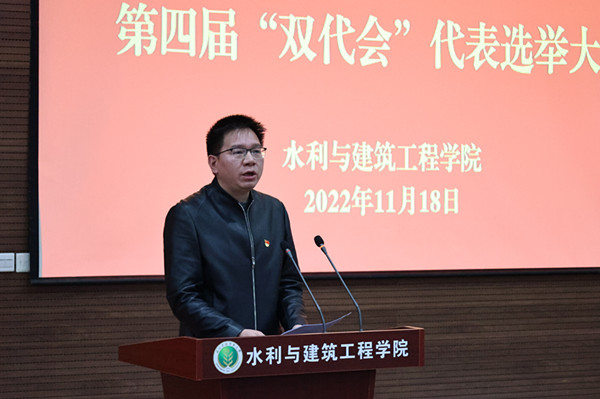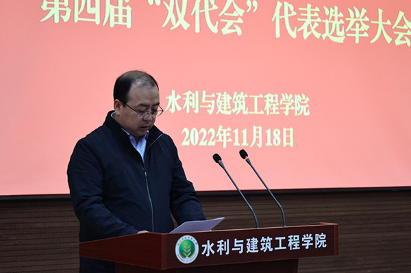 会议在庄严的国歌声中拉开帷幕,副书记张成凤介绍我院代表候选人酝酿产生过程、宣读学校关于代表候选人的批复,副院长胡明铭宣读了《亚洲在线 第四届教职工代表暨工会会员代表大会代表选举办法》。经无记名投票,会议选举王玉川、王正中、许景辉、孙世坤、李会军、李志军、张宽地、张智韬、郑伟、房玉林、胡明铭、胡笑涛、曹红霞、康艳、蔡焕杰为学校第四届“双代会”代表。
